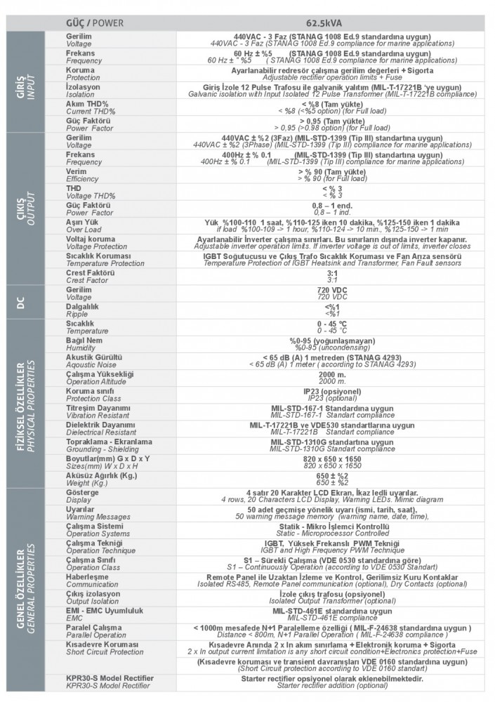•Sağlanan Standartlar: MIL-STD-1399 , MIL-STD-461-E, MIL-STD-167-1 / BV043,